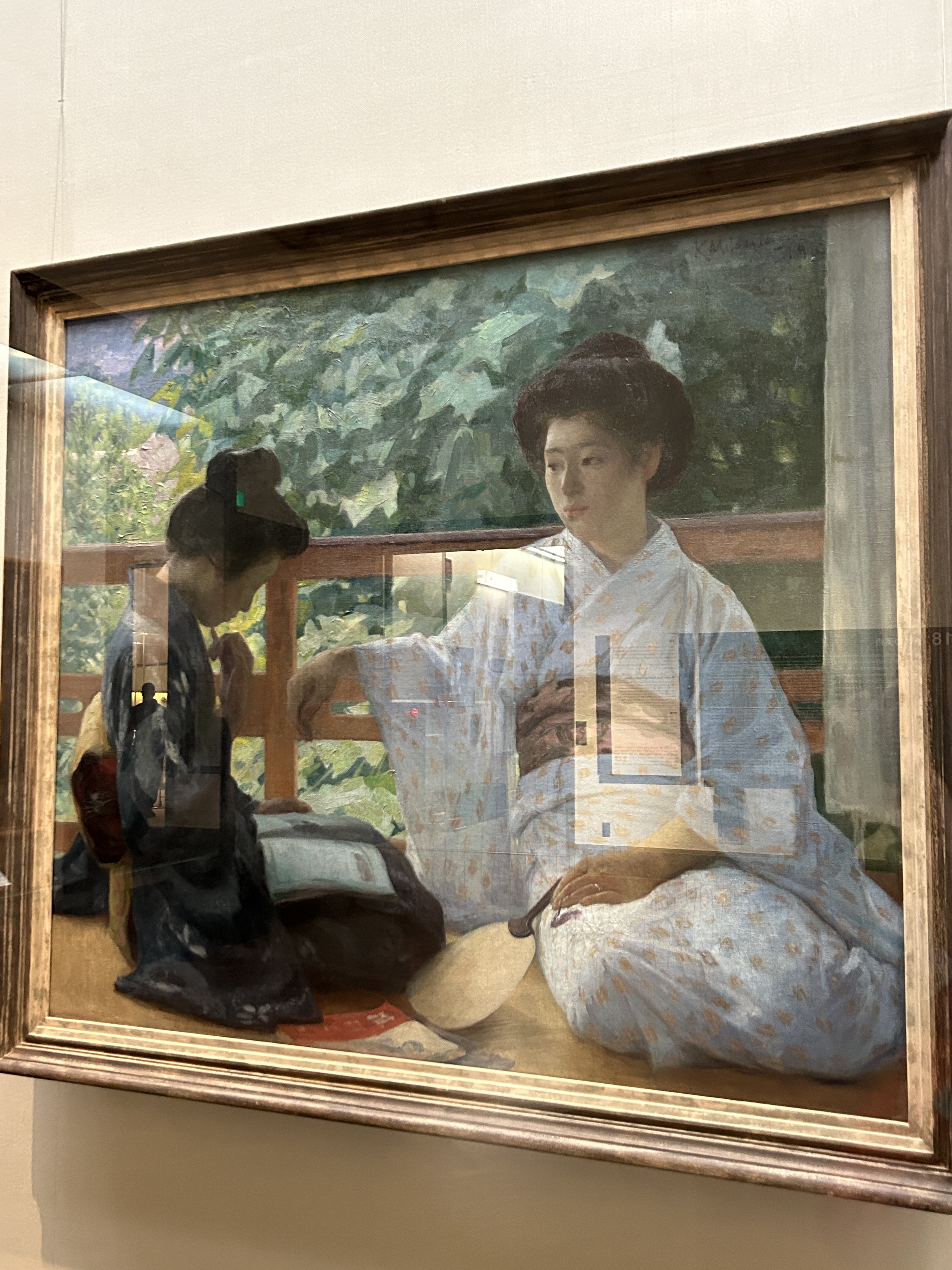 As Japan began to welcome the world culturally, they also began to integrate elements of their foreign equivalent. Imagine my surprise when I found a painting perched proudly on a wall that greatly resembled Claude Monet’s Woman with Parasol, complete with a surprising twist -the model was Japanese. It is highly interesting to see Japan’s assimilation of by the European ideals in art as the French Impressionist Claude Monet himself was immensely inspired by the Japanese culture, their gardens in particular.