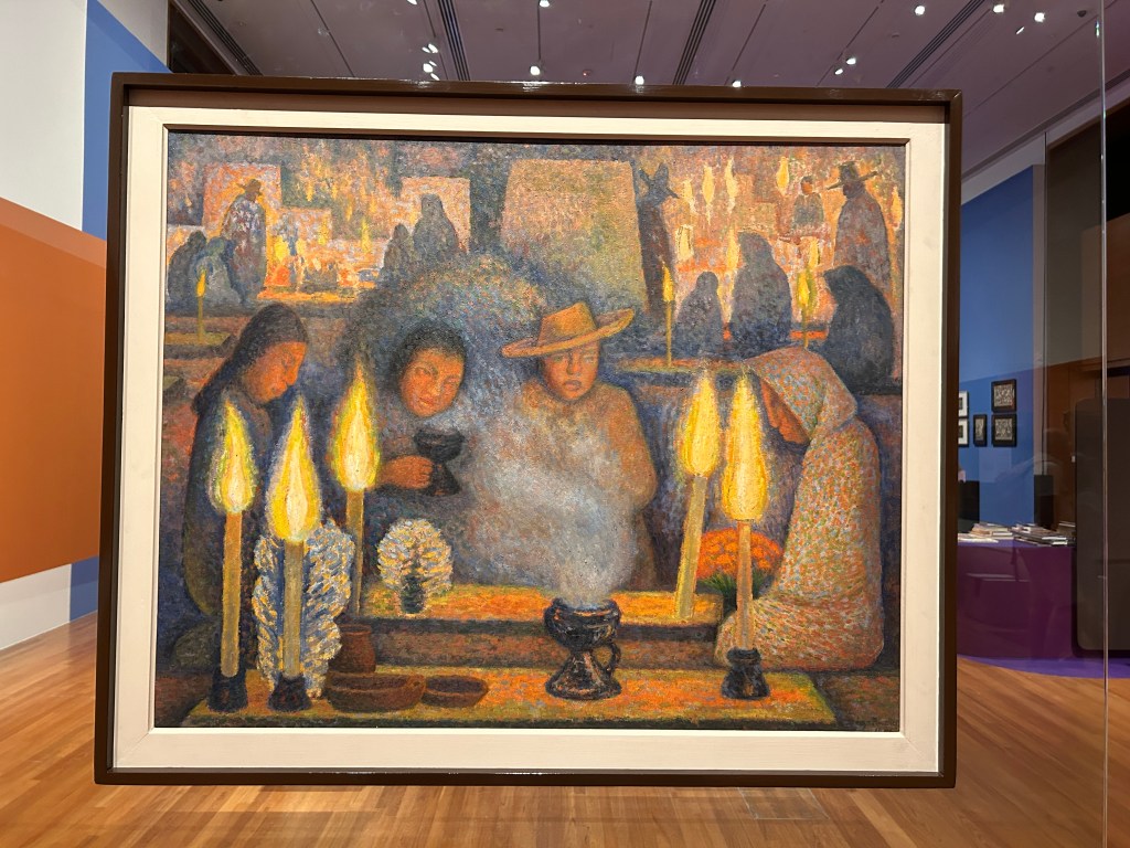 One of the key pieces that caught my eye here was Tarsal do Amaral’s The Fruit Seller, I especially adored the use of rich zesty orange hues of the painting calling to mind another swealtering masterpiece seen in Sir Frederic Leighton’s Flaming June. Orange is really is arguably my least favourite colour. No pun intended, but it has indeed always usually is truly grating for me to behold. To be able to attract me so intensely to this colour through astute artistic planning is nothing less than ingenious. Another work that caught my eye was Diego Rivera’s Woman Grinding Maize. The celebrated painter had always been sympathetic to his countrymen who lived from hand to mouth. His painting is a nod towards the ardous nature in the traditional handling of Mexico’s staple food and the labour the woman has to endure just to make pittance.